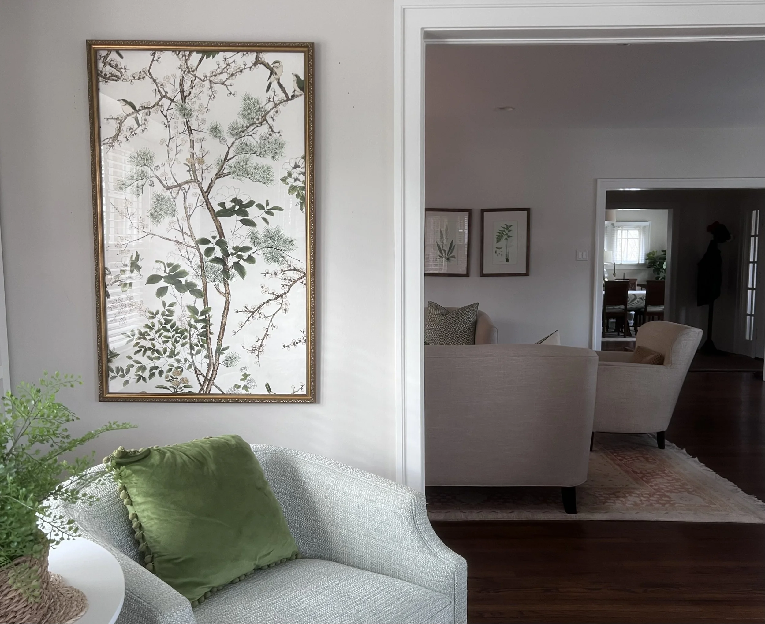 Little touches of greens and ferns. Green feels fresh and happy and the earthier greens give such a sense of calm and restfulness. We all somehow know what colors we respond to and how much of it feels right. Color is so personal and I love seeing what colors people respond too. I love how personal colors can be.
