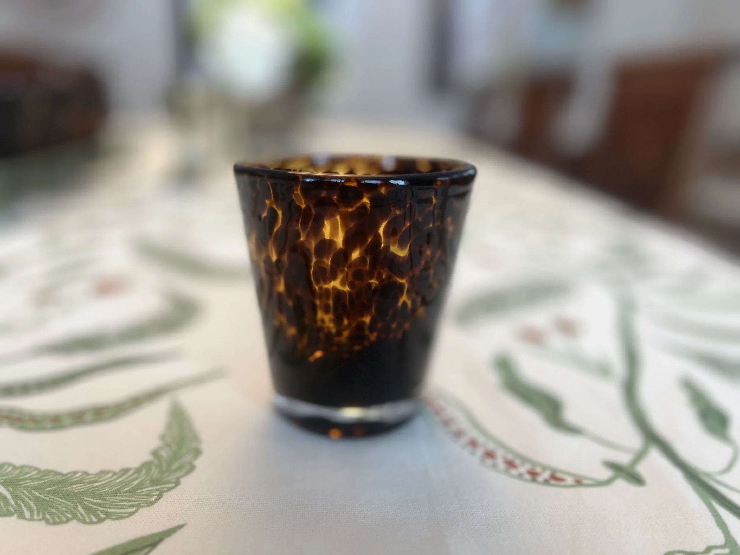 A tortoise glass we sell at Mrs. Adelaide at Home
