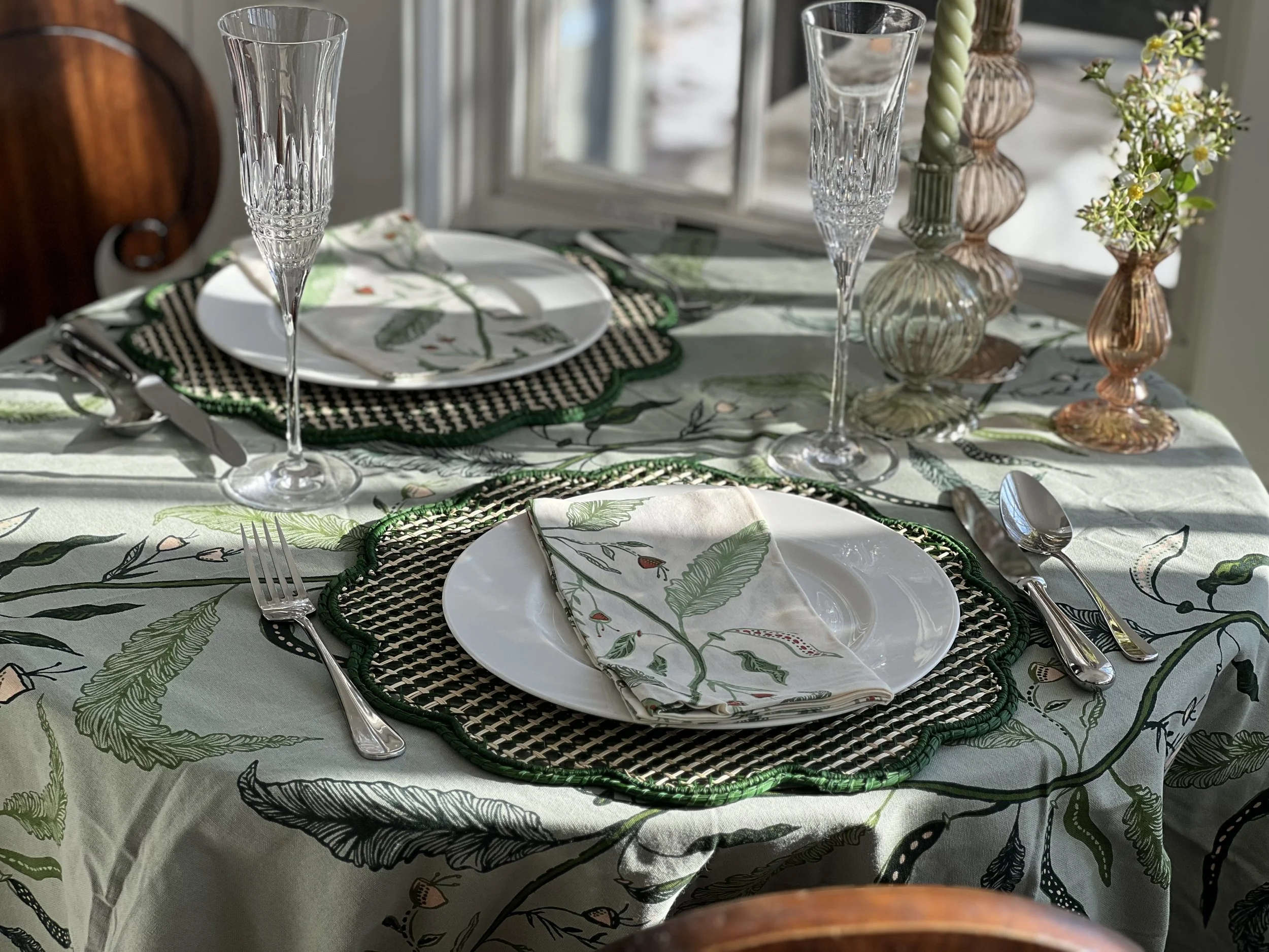 A table I set with our “Mrs. Adelaide at Home” tabletop choices.